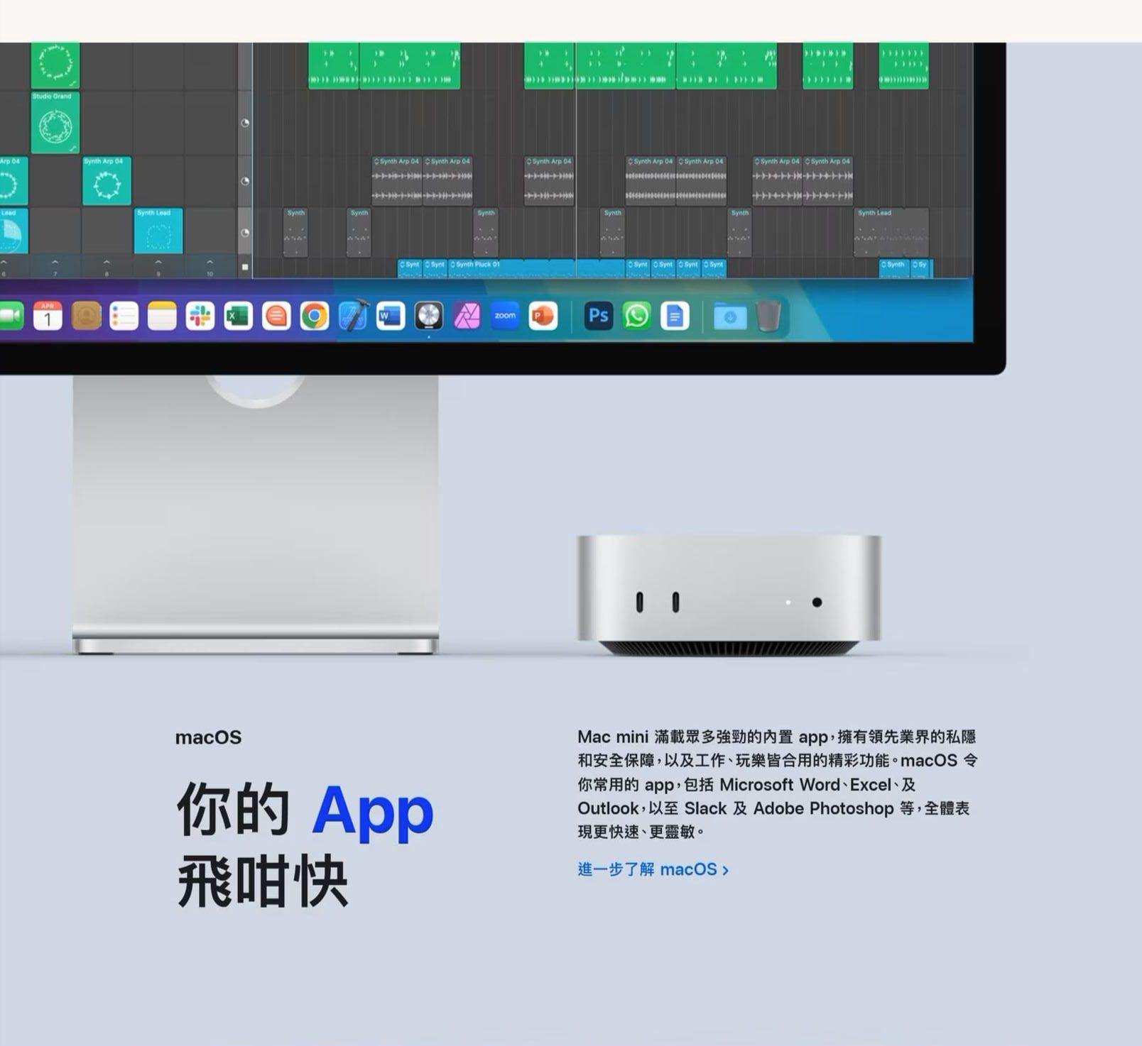全新 Mac mini 登場,本領更⾼,機身更細。 大小僅 5 吋 x 5 吋,不但非常強勁,而且充滿使命感。 它為 Apple 晶⽚重新設計,全力發揮 M4 及 M4 Pro 晶⽚的極速和強⼤實⼒,而正⾯及背⾯均配備種類齊全的連接埠。 Mac mini 定義效能,更是⾸款碳中和 Mac。 真正做到如此徹底,只有這部小小的 Mac。